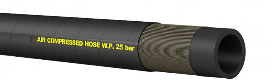 softwall hose for compressed air with light traces of oil mist, normally used for heavy duty applications in road construction sites, quarries and mines.